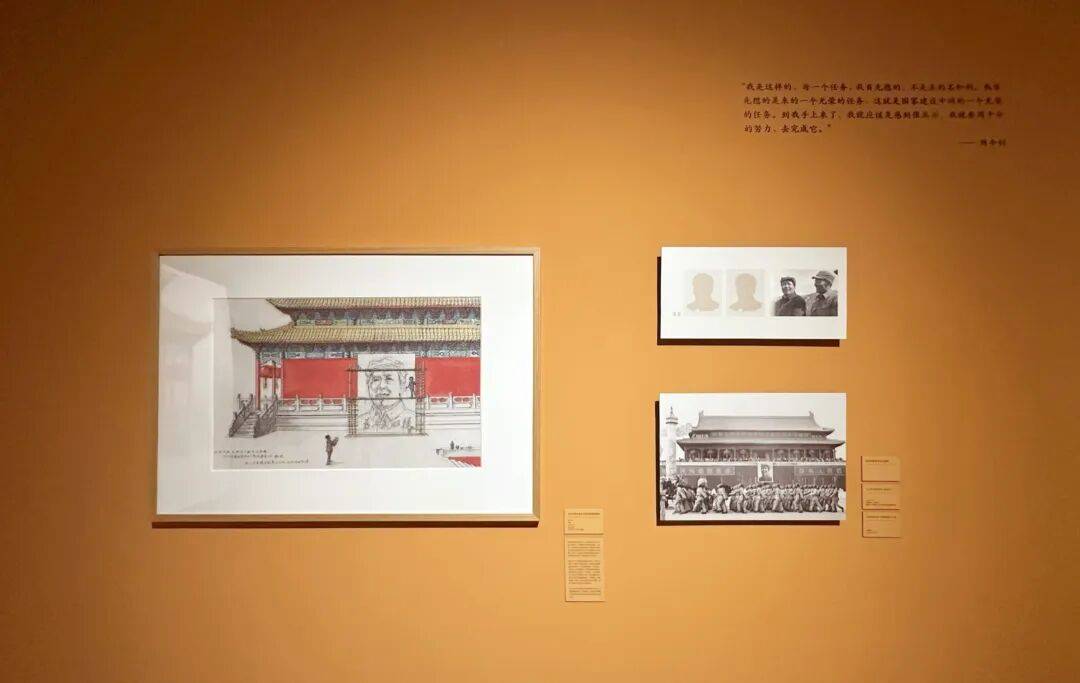 在这一时期,他主持、参与多项具有标志性的国家任务,并以杰出的艺术表达留下浓墨重彩的一笔。与陈若菊共同绘制开国大典城楼上的,参与毛主席纪念堂建筑装饰图案设计,创作北京饭店大型壁画,并完成“新兴力量大团结”邮票等设计。上述项目横跨油画、壁画与设计等多个领域,既要求有宏大叙事的准确表达,又需兼顾公共传播的清晰可读,并在审美层面形成大气明朗的视觉气象。正是在这种公共语境的高标准要求下,他的艺术语言得以不断校准,逐渐形成气象开阔、节奏明快、富于生机和建设性精神指向的视觉风格,并趋于成熟。