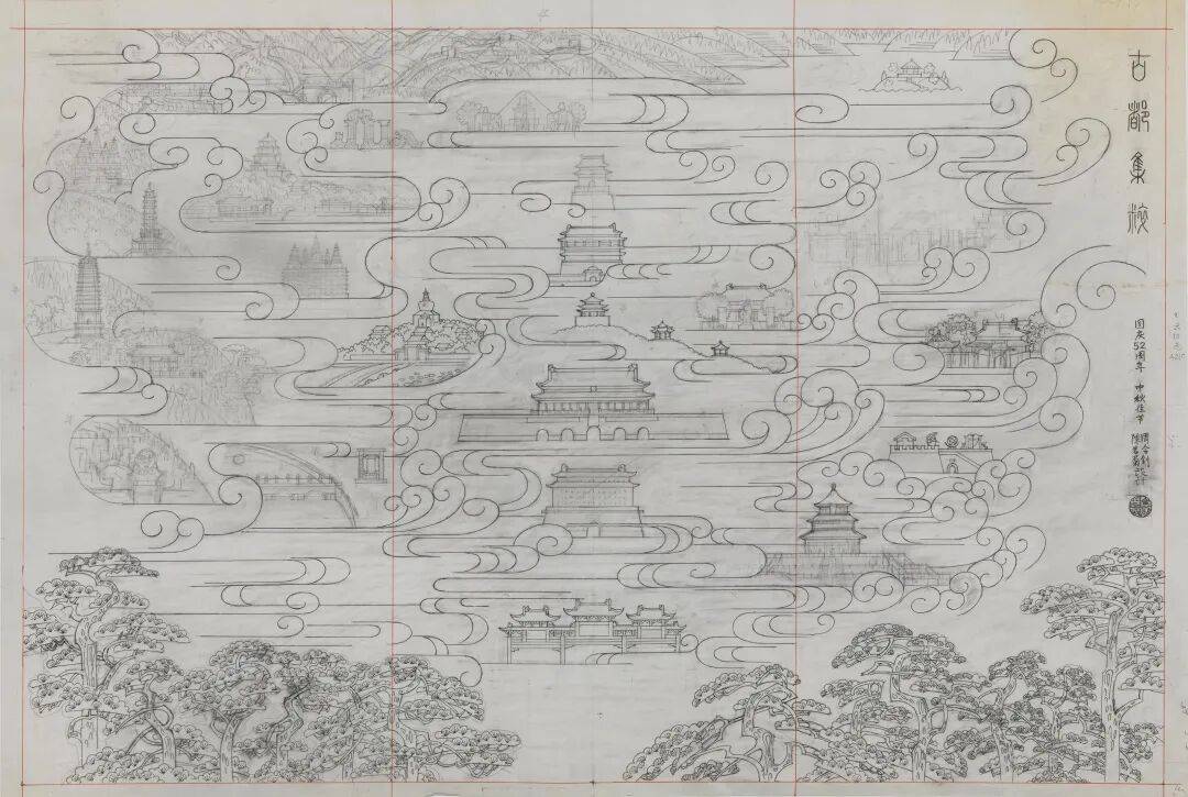 ▲ 周令钊、陈若菊 古都集粹第二稿(金线cm 纸本丙烯 中央美术学院美术馆藏