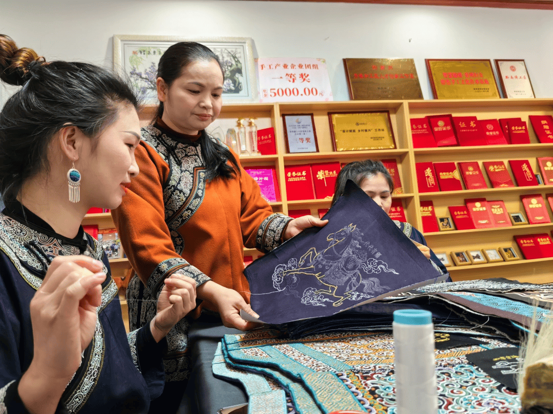 目前,三都县已发展13家马尾绣加工作坊,带动3万余名农村妇女就业,人均月收入3000至5000元。这些产品不仅畅销国内,更远销海外,马年相关订单量较去年翻倍,生产计划已排至2026年年中。