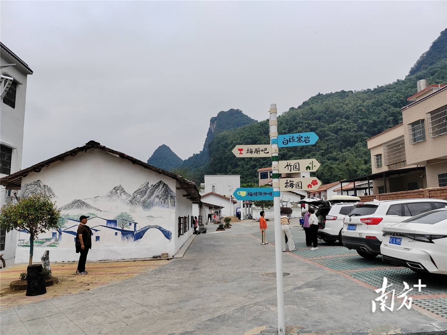 坐落在绿水青山间的梅子寨,村中建筑粉刷成白色的外墙,闲置旧瓦房改造成宽敞舒适的民宿、餐厅、非遗工坊等11个新业态,建起广场阶梯、鳄鱼泉等。农村职业经理人运营起咖啡屋、奶茶店,村民在家门口、巷道边支起小摊卖土特产,乘坐大巴而来的旅游团、珠三角各地的自驾车辆络绎不绝,美丽宁静中不失热闹繁忙……