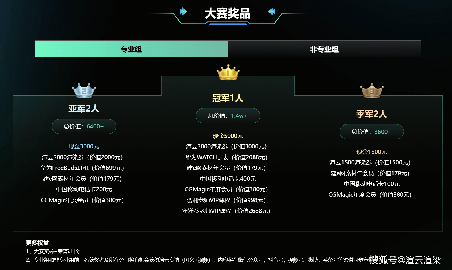 丰厚奖励堪称本次大赛的一大亮点。专业组 TOP1 可斩获价值 14000 + 的大奖,包含5000 元现金、3000 元渲云渲染券、华为 WATCH 手表及多位行业名师 VIP 课程;TOP2-3 与 TOP4-5 也能收获现金、渲染券、华为周边U8国际app及各类会员权益。非专业组 TOP1 奖励价值超 12000 元,现金 3000 元搭配多重实用福利,TOP2-3 及 TOP4-5 同样福利满满。更值得一提的是,所有报名成功的参赛者均可直接领取渲云 20 元无门槛渲染券、建 e 网素材月会员与 D5 渲染器月会员,专业组与非专业组前三名获奖者及所属企业还将获得渲云官方独家专访机会,通过全媒体矩阵实现品牌深度曝光。