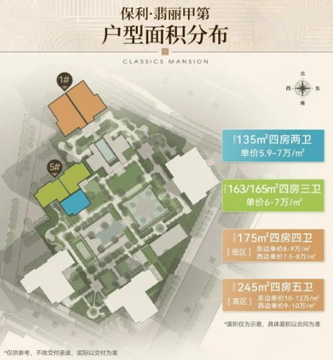 接下来,让我们深入了解一下项目的基本信息。保利·翡丽甲第的占地面积约为16383.65平方米,建筑面积约为185203.75平方米,容积率约为7.32。虽然容积率看起来不低,但考虑到其超高层的设计和抬高的社区平台,实际的居住密度和舒适度并没有受到影响。车位比达到了1:1.4,这是一个非常充裕的配置,完全能够满足业主的停车需求,甚至还能应对访客的临时停车。项目共规划了5栋楼,总层高在56至58层之间,目前主推的是1栋、4栋和5栋。其中,1栋高达57层,43层以下是两套175平方米的户型,45至57层则是一套246平方米的终极藏品;5栋是塔楼设计,一户139平方米,两户163平方米。值得一提的是,这些都是超新规产品,得房率最高能达到130%。这个数据在目前的市场上简直是“逆天”的存在,意味着你买到的房子,实际使用面积远远超过了建筑面积,性价比极高。