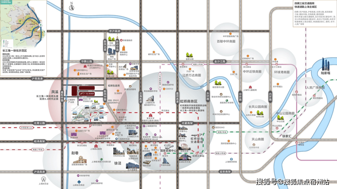 而宏观来看,华新地处长三角一体化示范区、沪西门户以及大虹桥的交汇点位,其依托长三角绿色生态一体化发展、中国国际进口博览会和虹桥国际开放枢纽三大国家级战略,将成为青浦城市枢纽门户以及长三角城市群的重要支撑和关键节点!