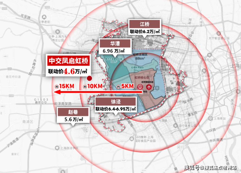 目前,与中交·凤启虹桥仅一站之隔的芳乐路站TOD旁的一块宅地,联动价已提升至6.96万/㎡,徐泾单价同样是直逼7万/㎡,没有600万以上预算,根本拿不下!