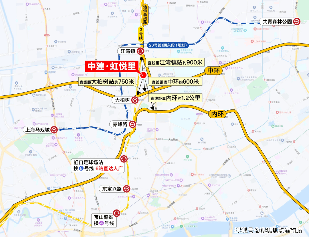 项目直线米,同时这一段中环和内环紧挨着,因此【中建虹悦里】直线公里,项目东侧还邻近逸仙高架路。