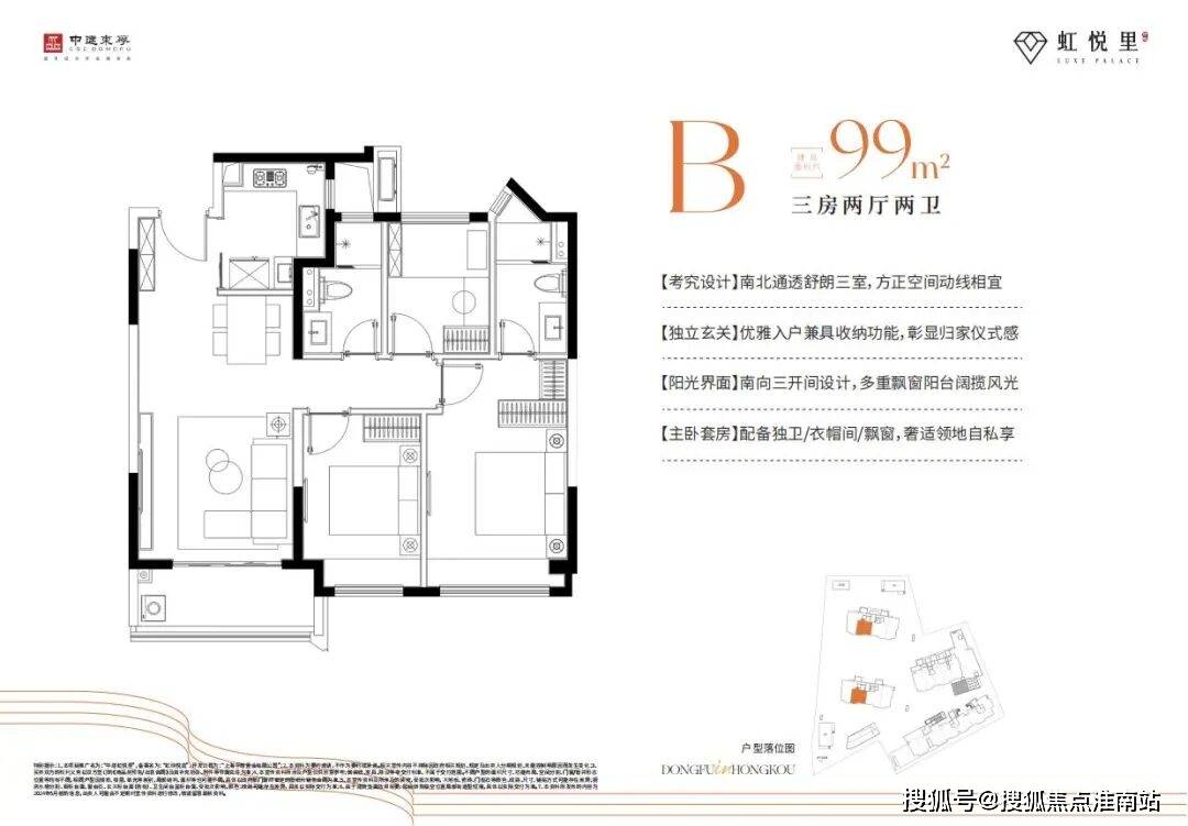 产品方面,中建虹悦里整盘248套房源一次性入市,从建面约79㎡精致2房,到建面约91-99㎡轻奢3房,多元户型总有一个适合你。