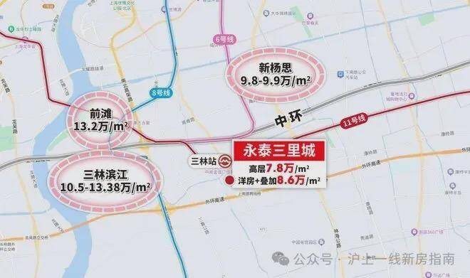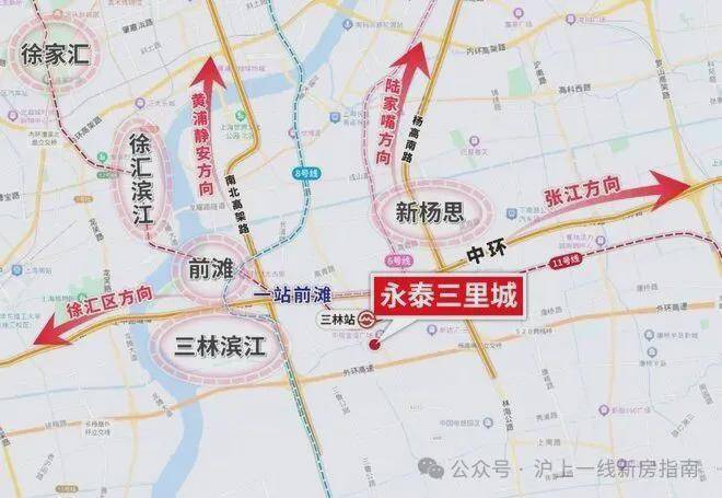 事实上,三林滨江在空间上与前滩更为贴近,但永泰三里城在时间距离上更占优势。